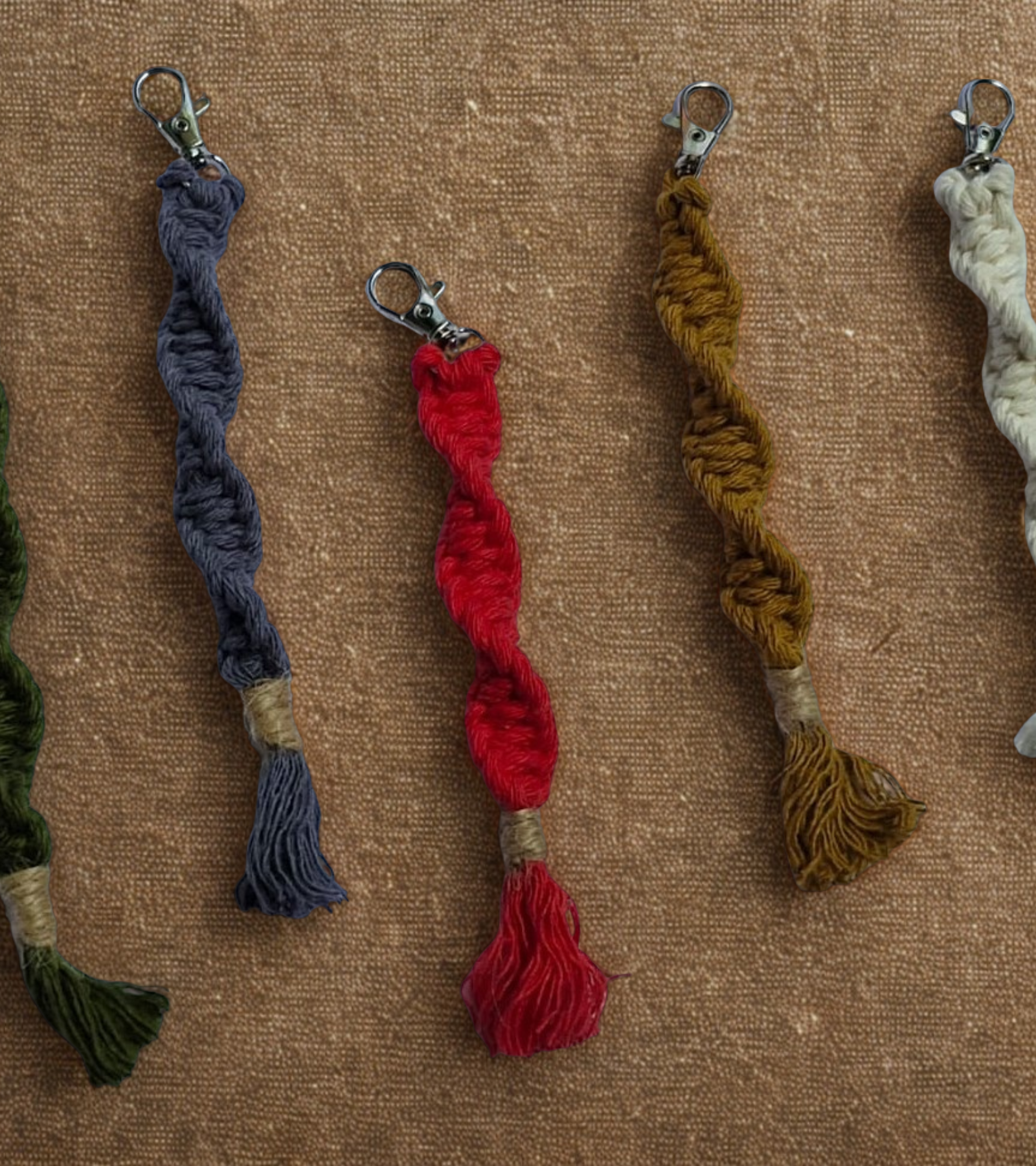 Descubre la elegancia artesanal de nuestros llaveros espiral, elaborados en hilo de algodón con la técnica macramé espiral. Cada pieza combina resistencia y estilo, ideal para mantener tus llaves organizadas con un toque único y sofisticado. Perfectos para regalar o complementar tu estilo diario con un accesorio hecho a mano que destaca por su diseño y durabilidad.